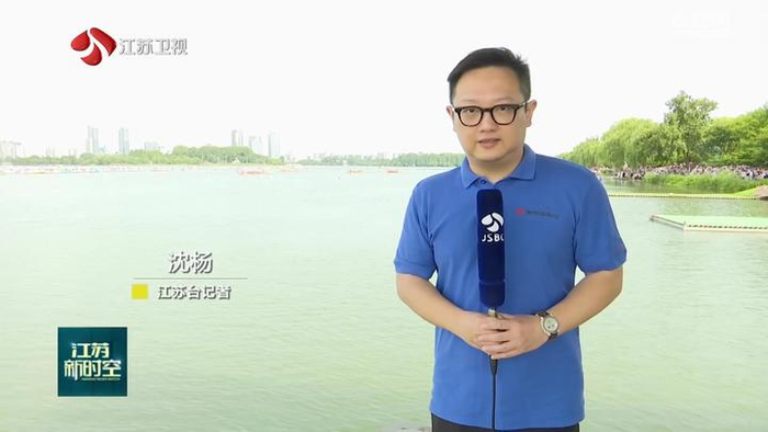 江苏台记者沈杨:鼓声阵阵催奋进,龙舟竞渡闹端阳,在南京玄武湖,正在进行的是江苏省第三届传统龙舟邀请赛,选手们迎风斩浪,奋力拼搏,气氛相当热烈。