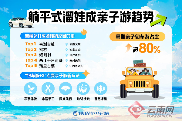 云南网讯(记者 彭锡)暑假开始进入倒计时。通过提前监测分析假期旅行情况,携程包车游近日发布《2024年暑期包车游趋势洞察》(以下简称《报告》)。《报告》显示,暑期中长线游需求升温的背景下,“包车游”愈加受到追求松弛出行与深度体验的游客的青睐,其中云南喜洲古镇成为乡村亲子游最热目的地。