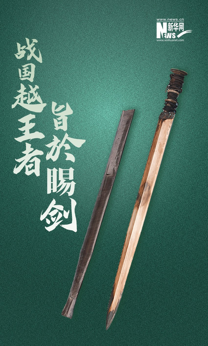 越王者旨於睗剑为铜质,剑体宽阔中脊起线,双刃呈弧形于近锋处收狭,圆盘形剑首,圆茎上有两凸箍,箍饰变形兽面纹,茎绕丝质缠缑,剑格两面铸双钩鸟虫书铭文。正面为:戉(越)王戉(越)王;反面为:者[zhū]旨[jī]於[yú]睗[shì]剑。