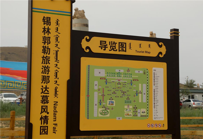 在会场内的重点区域,安装会场导览地图标识标牌的工作人员认真专注,83处标识标牌逐一就位。那达慕会场内设置了观众座席和看台,预计提供座席约1万个,目前已搭建完毕。餐饮区内,设置了108个吊装集装箱商铺以及遮阳网等游客用餐设施,当前已完成集装箱吊装、防风加固、水电检修等工作。会场北侧牲畜棚圈设施搭建完工,青干草、兽医兽药已配备齐全,以满足活动期间牲畜饲喂、饮水等需求。会场内设置固定式卫生间5处、移动集成式厕所8个、移动单体卫生间300个。