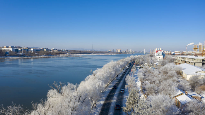 吉林市是著名的化工城,曾诞生新中国第一桶染料、第一袋化肥。让这座城市驰名海内外的,还有每年冬日“不冻江”畔的雾凇。源自长白山天池的松花江,在吉林市呈“S形”穿城而过,这一江段终年不冻,冬季也能保持4摄氏度的水温。当温差使江水产生的雾气遇到冷空气后,会凝结于树上,便形成了沿江十里长堤的雾凇奇景。