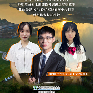 李梦瑶是江西师范大学马克思主义学院学生。为纪念红军长征出发90周年,7月15日,她与老师和同学一起参加了“复兴志 报国行”大学生思政实践活动,跟随“而今迈步从头越—长征路上学党史”网上主题宣传活动,来到赣州市于都县,感受红军革命斗争的艰难岁月,在长征路上学党史。