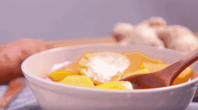 好甜口的,可向甜薯奶里加入生姜红糖水,尝一口,温热饱腹,甜而不腻。