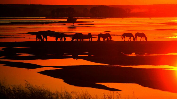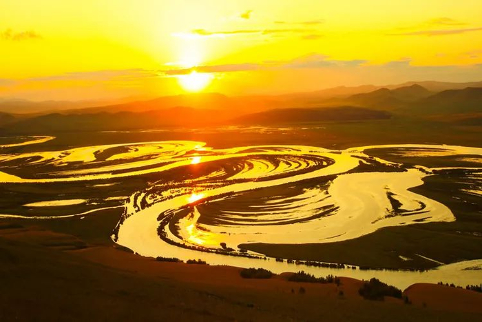 夕阳下的额尔古纳河