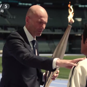 法国球星齐达内带着火炬穿过巴黎的大街小巷,随后三个法国少年将圣火带到塞纳河畔交给神秘火炬手。