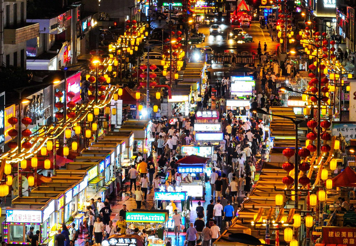 热闹非凡的夜市则是吉林市夜间文旅的另一大亮点。色香味俱全的特色小吃、加工精美的手工艺品、熙熙攘攘的人群,让城市的夜晚弥漫着浓浓的烟火气。