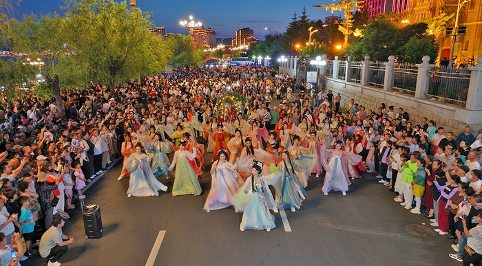 吉林市的夜间文旅活动丰富多彩。街头艺人的精彩表演吸引了众多游客驻足观看,歌曲、舞蹈、魔术等节目轮番上演,为夜晚增添了欢乐的氛围。