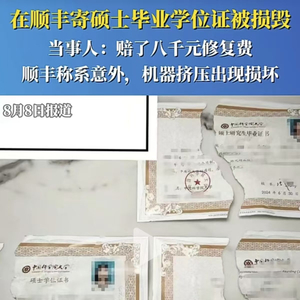 据报道,近日有网友在社交平台发文,称其硕士毕业证、学位证等证书被快递撕毁,相关话题随即登上热搜。