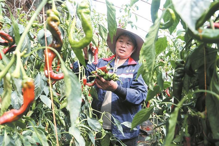 六师芳草湖农场职工在蔬菜大棚里采收辣椒(资料图片)。近年来,芳草湖农场不断加大政策扶持力度,推动设施农业转型升级,有力促进了农业高质量发展。魏新江 刘娟 摄