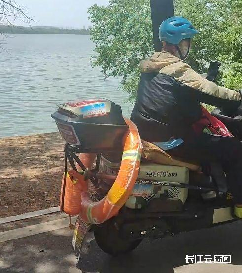 “我送餐的范围主要在藏龙岛一带,这里三面环水。有一天晚上一个女孩想跳水轻生,我穿着救生衣才敢下水救人。现在我把这些装备都带上,就是想万一遇到事儿,就能帮上忙。”