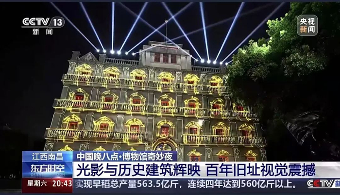 24日晚,央视《东方时空》报道:中国晚八点,夜游看中国,本周主题依旧是博物馆奇妙夜。今天我们要去的是位于江西的南昌八一起义纪念馆,这是一座为纪念南昌起义而设立的专题纪念馆。纪念馆于1959年正式对外开放,包括南昌起义总指挥部旧址、贺龙指挥部旧址等五处革命旧址,其中南昌起义的总指挥部旧址——江西大旅社到今年已经建成100周年了。八月以来,这里每天晚上都会举办“光影八一”灯光秀,生动的红色主题影像加上现代光影音乐的设计,吸引了大批的游客。当然,光影秀之外,纪念馆内更有不少历史馆藏等待探访,马上跟随记者的镜头去现场看一看。
