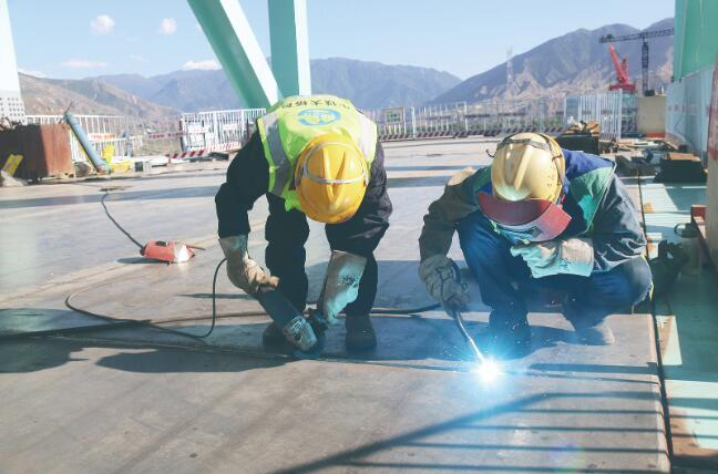 虽已入秋,但依然能感受到高原骄阳的火辣,工人师傅皮肤晒得一个比一个黝黑。“钢梁热传导性好,升温很快,特别是在七、八月份,有时候吊装时间不凑巧,得中午抢班打冲钉,要是手套没戴好碰到钢梁表面,就得烫一个‘铁板烧’。”杆件对位完成后,周师傅这才稍稍缓口气,放松了刚刚工作时认真严肃的表情,幽默地跟记者聊了起来。