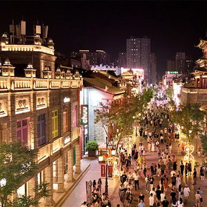 夜晚的钟楼街人来人往。人民网 卢鹏宇摄
