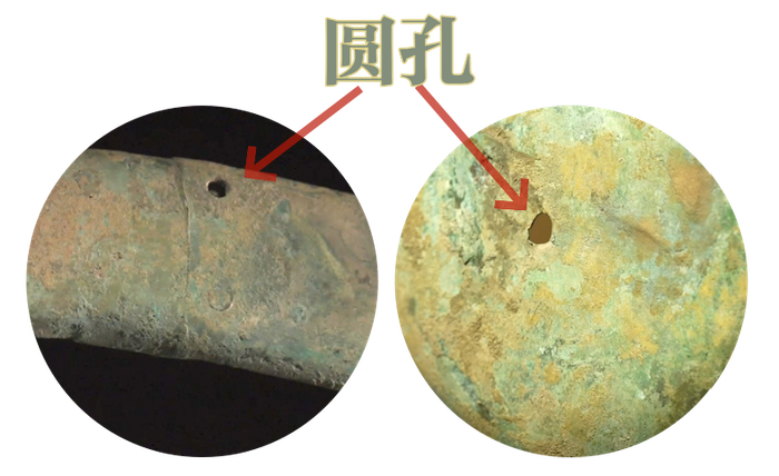 学者推测“太阳”中心和晕圈上的6个圆孔便是固定或钉挂使用的。