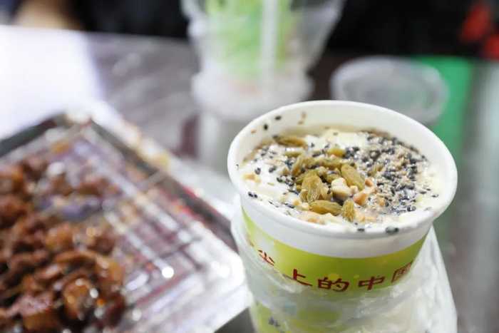 这份甜品,少不了诸多西北的干果配料:葡萄干、桃仁、花生、果干、芝麻……吃起来柔软滑嫩又爽口。