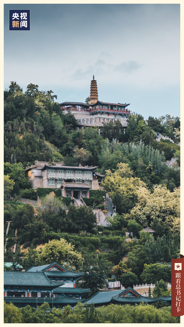 站在白塔山顶部,斑驳时光的白塔,与亮丽的建筑隔河相望,仿佛一个“古”一个“今”,穿越了古今。