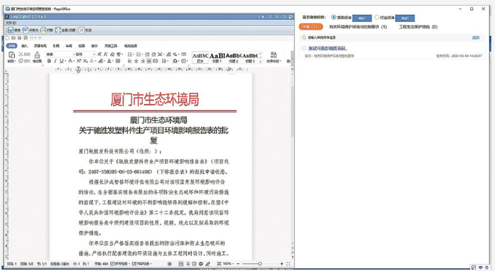 “以新上马的生产线二期为例,新的排污许可证、排污权核定等前期手续全部在线上完成,有生态环境部门的经办人员精准对接,提供专业支持,为项目验收及后续投产争取了起码一个月的时间。”企业相关负责人林世超说起办手续的速度仍十分激动,“在经办人员指导下,我们快速地完成了排污许可证填报,申报当天就获得了排污许可证!‘即来即办’,加上之前排污权核定的时间,一共节省了40个工作日。”