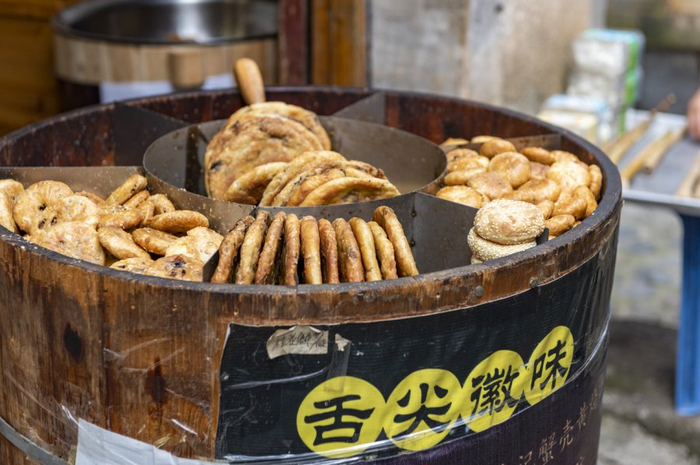 安徽是全国13个粮食主产区和五大粮食净调出省之一,粮食产量连续7年稳定在800亿斤以上,2023年安徽粮食总产达到830.16亿斤,实现“二十连丰”,居全国第5位。好的小面制作的面粉,与肥肉、梅干菜、芝麻、盐、菜油为原材制作皮、馅,经多道工序制成再经过数小时烘烤,就是安徽的传统小吃黄山烧饼,吃起来酥脆爽口,油而不腻,令人回味无穷。