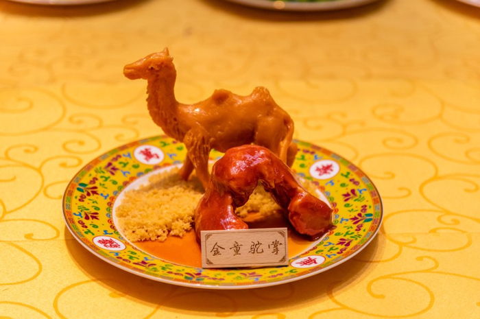阿拉善被誉为“骆驼之乡”,近年来驼产业蓬勃发展,驼绒、驼奶、驼美食等产业链不断延伸,双峰驼数量得到恢复性增长,也带动了农牧民走上增收致富的路子。其中驼掌含有丰富的胶原蛋白,配合秘制卤料慢炖入味后,筋道醇香,细嫩适口,在草原人民的食谱中位列“八珍”。