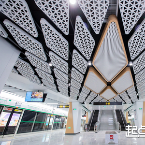 线路标准站将泾渭河“分明与融合”的形态具象化,四条飘带代表着线路连接的四个区域,并以流线型折片的表现形式与客流动线保持一致。红旗厂站、水流站为线路特色站,红旗厂站设计主题为“科技驱动”,提取发动机的造型和星空元素,打造了兼具科技感、趣味性和浪漫色彩的建筑空间;水流站更是将夕阳西下的水流光影美学融入设计,提取灵动的曲线元素以及夕阳的渐变色彩进行融合排布,展现了现代建筑与自然美学的完美结合。