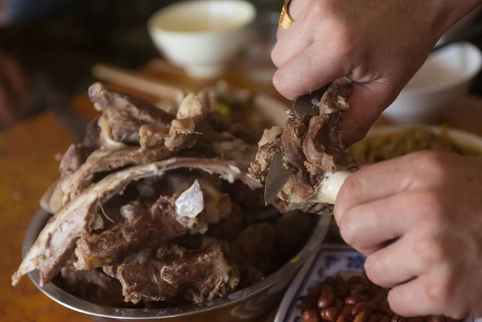 手把羊肉也是内蒙古的传统美食。将羊肉带骨剁成大块,加盐小火煮熟,即可食用。