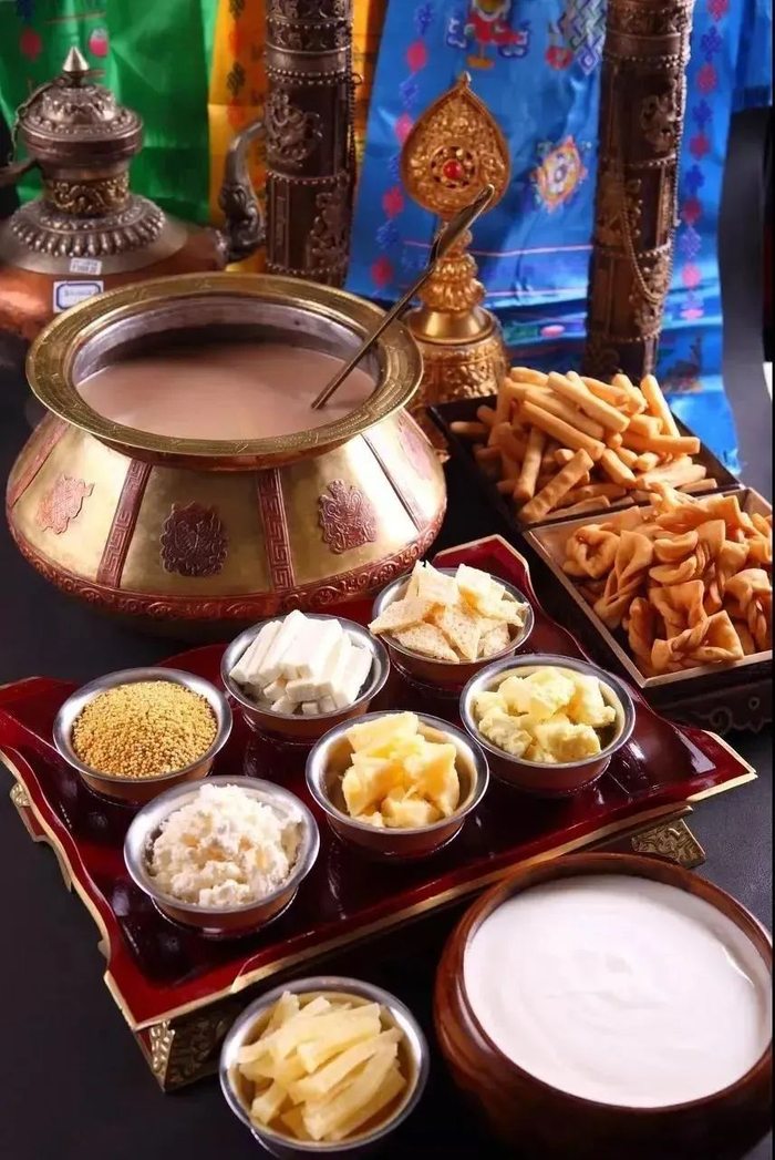 内蒙古东西跨度大,饮食习惯也不尽相同,但有一件事儿却毫无争议,那就是——奶茶是咸的。频繁火出圈的“蒙古公主的下午茶”,便是咸奶茶加入炒米、肉干、奶皮子等制作而成。一饮而尽,饱腹感十足。