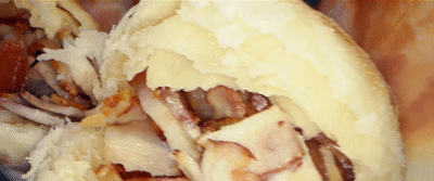 硬核碳水少不了赤峰对夹。对夹是一种酥油烧饼,侧切一口,中间裹着熏猪肉,讲究出炉即吃,一旦变凉,对夹皮就会变硬,熏肉也会变干,口感就差了许多。