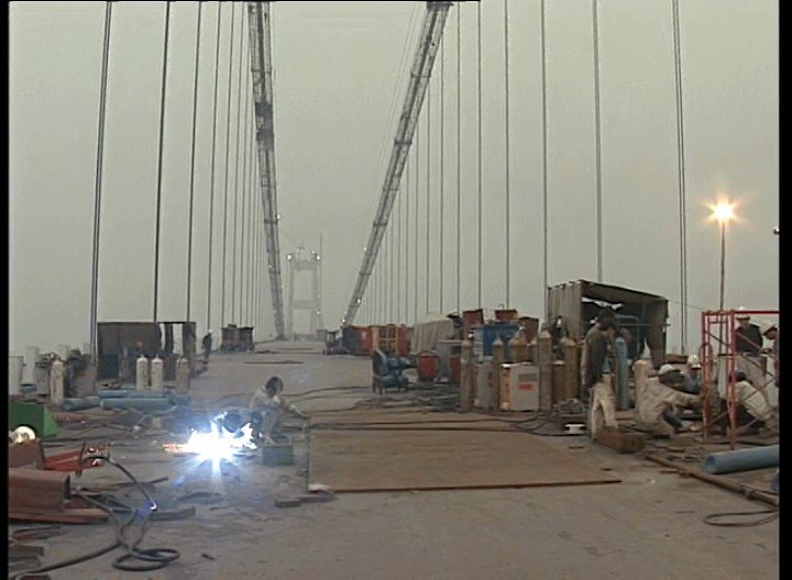 1999年2月9日,大桥首段桥面钢箱梁吊装到位