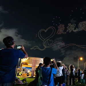 2024年9月28日晚,主题为“香港马腾盛世”的无人机表演在湾仔码头附近的维多利亚港夜空上演,为国庆节前夕的周末时光增添喜庆气氛。(中新社记者 侯宇 摄)