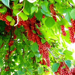 在桦木林场五味子种植基地内,桦木林场职工孙洪鹏和工人们正忙着给五味子剪枝,增加植物的通风以及透光度,为来年增收做好准备。望着绿油油的藤蔓上,挂满红彤彤的五味子,孙洪鹏脸上洋溢着满满的幸福。