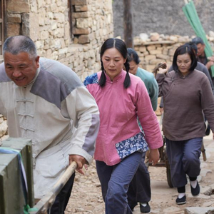 沂南县红嫂家乡旅游区沉浸式体验项目《重走支前路》,参与者正在运送支援前线的物资