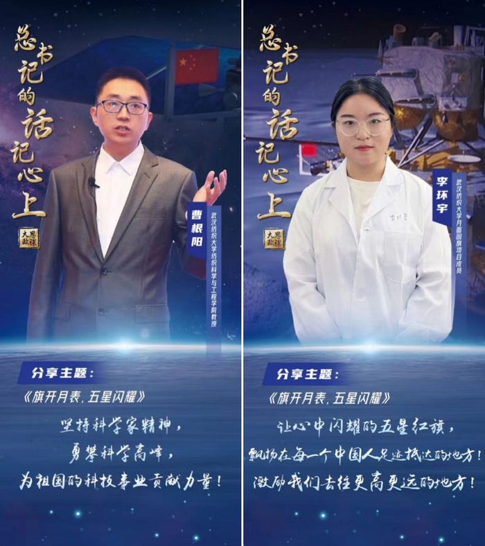 “中华民族是勇于追梦的民族,党中央实施探月工程,圆的就是中华民族自强不息的飞天揽月之梦。”五星红旗是我们的骄傲,红旗登月关乎着我们中国人的尊严和荣誉。自主研发一面在月球上独立展示的五星红旗,是任务,更是一项“特殊的使命”。武汉纺织大学月面国旗研发团队的师生们历经“千锤百炼”:一次次喷丝实验只为追求0.1克的极致;一次次颜色配比只为还原“中国红”的本色;一次次模拟试验只为让国旗在正负150度的环境下平整展开……至少四五十道饱含科技含量的工序,背后是一代代科技工作者创新创造的青春步履。