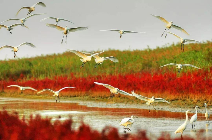 近年来,一些珍稀野生动物在山东的湖泊、湿地等频频“亮相”。随着天气转凉,各地的候鸟开始迁徙,湿地里的植被也开始逐渐变换出多彩的颜色……山东的湿地,超适合假期里去转转!