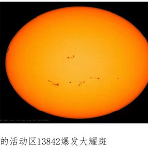位于太阳表面中部偏左下的活动区13842爆发大耀斑(图片由漠河气象局提供)