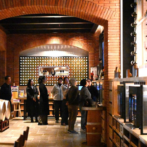 游客在图兰朵葡萄酒小镇的酒窖参观。新华社记者 毛竹 摄