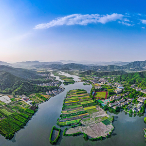 从远处俯瞰春晖中学与白马湖