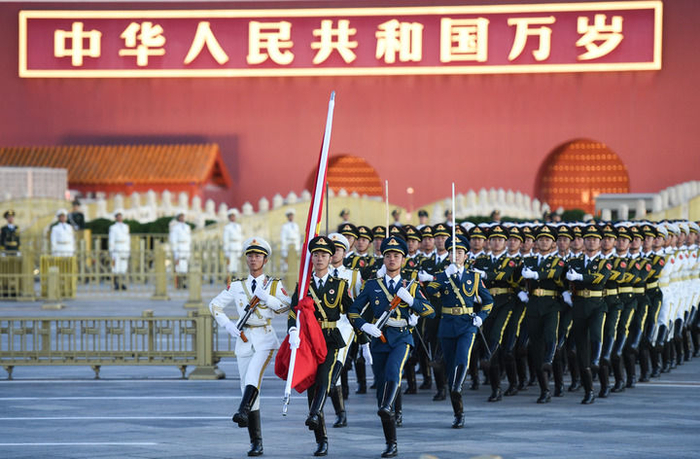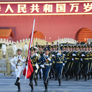 10月1日清晨,隆重的升国旗仪式在北京天安门广场举行,庆祝中华人民共和国成立75周年。