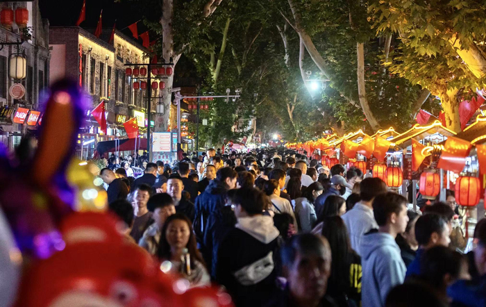 600米市井长巷人潮汹涌,一路有戏沉浸演艺,美醉游人。国庆节期间,“老城烟火 寻迹晋城”南大街夜游活动,以“夜游凤城·一路有戏”为看点,融合歌舞、戏曲非遗、音乐等多种艺术演出,以南大街古街实景为演艺舞台,采用沉浸式实景表演的形式,带领游客穿越时空,展开一次老街奇幻夜游体验。