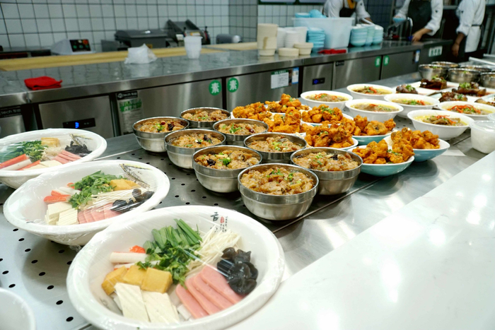 走进食堂,一股饭菜的香气扑鼻而来。4元一份的小碗菜、16元一碗的炸酱面、现包现煮的水饺,还有各式各样的炒菜,荤素搭配得当,食材新鲜诱人,价格更是亲民实惠。