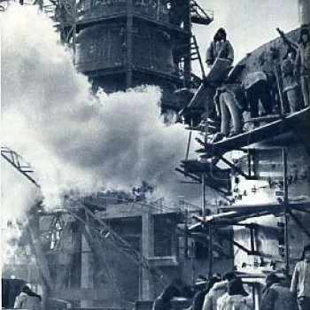 1959年9月7日,竣工后的包钢一号高炉开始烘炉。新华社记者陆轲摄