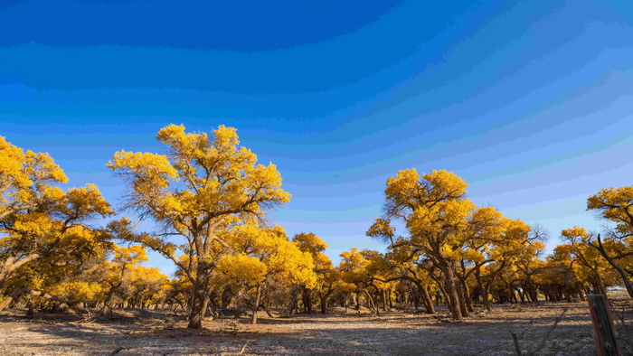走在林间,脚下的沙土微微扬起,耳边只剩风穿过树梢的轻语。你会感受到一种穿越时空的震撼,仿佛自己成了天地间的一个旅人,与这些古老的胡杨共享这一瞬的宁静与辉煌。