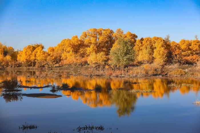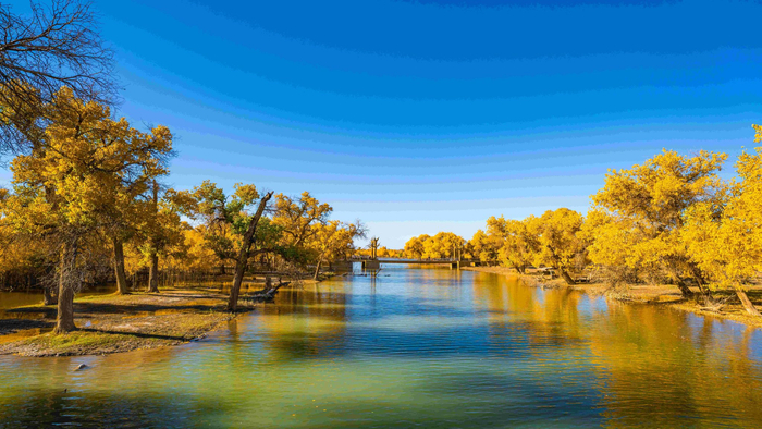 深秋的金色胡杨林,如诗如画。(摄影:牛嘉颖)