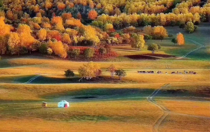 骑上一匹马,穿行在这片色彩斑斓的草原上,头顶是高远的蓝天,身边是奔跑的牛羊,一切都显得那么辽阔、自由。夕阳下的呼伦贝尔,让人不禁驻足,眺望远方那一抹渐暗的天际线,仿佛在和秋天最后一刻的光辉告别。