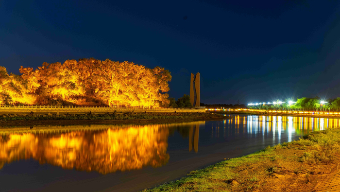 胡杨树挺拔的身姿在夜色中更加坚毅,它们是生命的奇迹,也是大自然赋予我们的绝美画卷。(摄影:赵勇强)