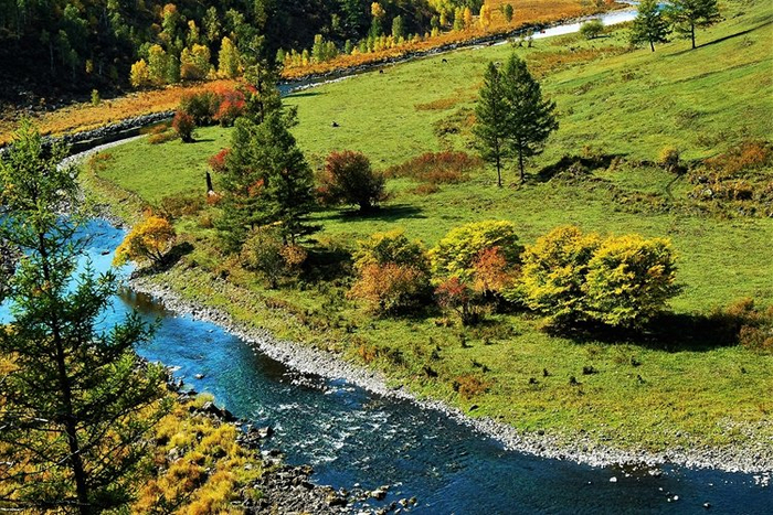 阿尔山的秋天,是一幅静谧的水彩画。层层叠叠的山峦披上了秋天的外衣,红的、黄的、绿的树叶交错在一起,仿佛为大地织成了一张巨大的锦缎。山间的小溪清澈见底,倒映着五彩的山林,时而还有几只鹿安静地走过,增添了一丝梦幻的气息。