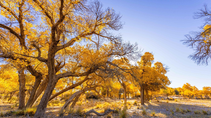 金色胡杨林散发着迷人的魅力。它是大自然的杰作,也是人们心中永远的向往。(摄影:赵勇强)