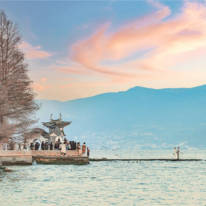在全长129公里的洱海生态廊道上,这样的场景每天都在重复,无数新人携手奔赴大理,或对另一半深情表白,或拍一组唯美婚纱照,抑或是举行一场目的地婚礼,一起许下山盟海誓,见证海枯石烂。