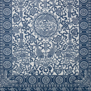 浙江省桐乡市石门镇,“中华老字号”丰同裕染坊的院落内,一批刚印染好的蓝印花布高高挂起,上面的花朵等图案十分精美。染坊负责人哀警卫,不仅是中国工艺美术大师,还是国家级非物质文化遗产项目桐乡蓝印花布印染技艺传承人,这批蓝印花布的设计正出自他手。