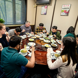 10月23日中午,2024青年汉学家研修计划甘肃班的25名青年汉学家走出秋意正浓的兰州大学校园后,受到兰州市政府之邀齐聚金鼎牛肉面,品味正宗地道的兰州牛肉拉面。