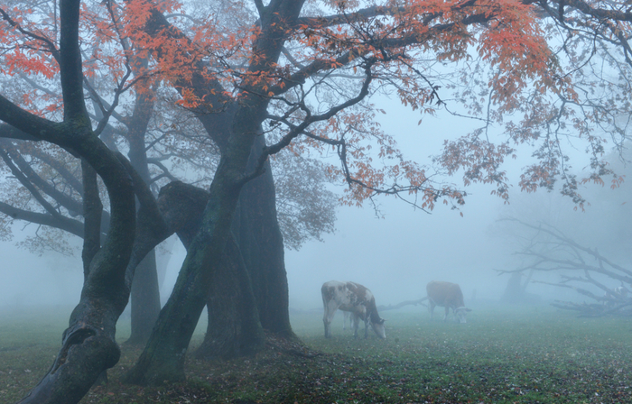在高山气候的作用下,深秋的四方顶景区形成了奇特的森林与植物群落,呈现出一幅近乎远古时期的生态景观。雾锁云台,被誉为“龙岗画苑”“枯木天堂”。